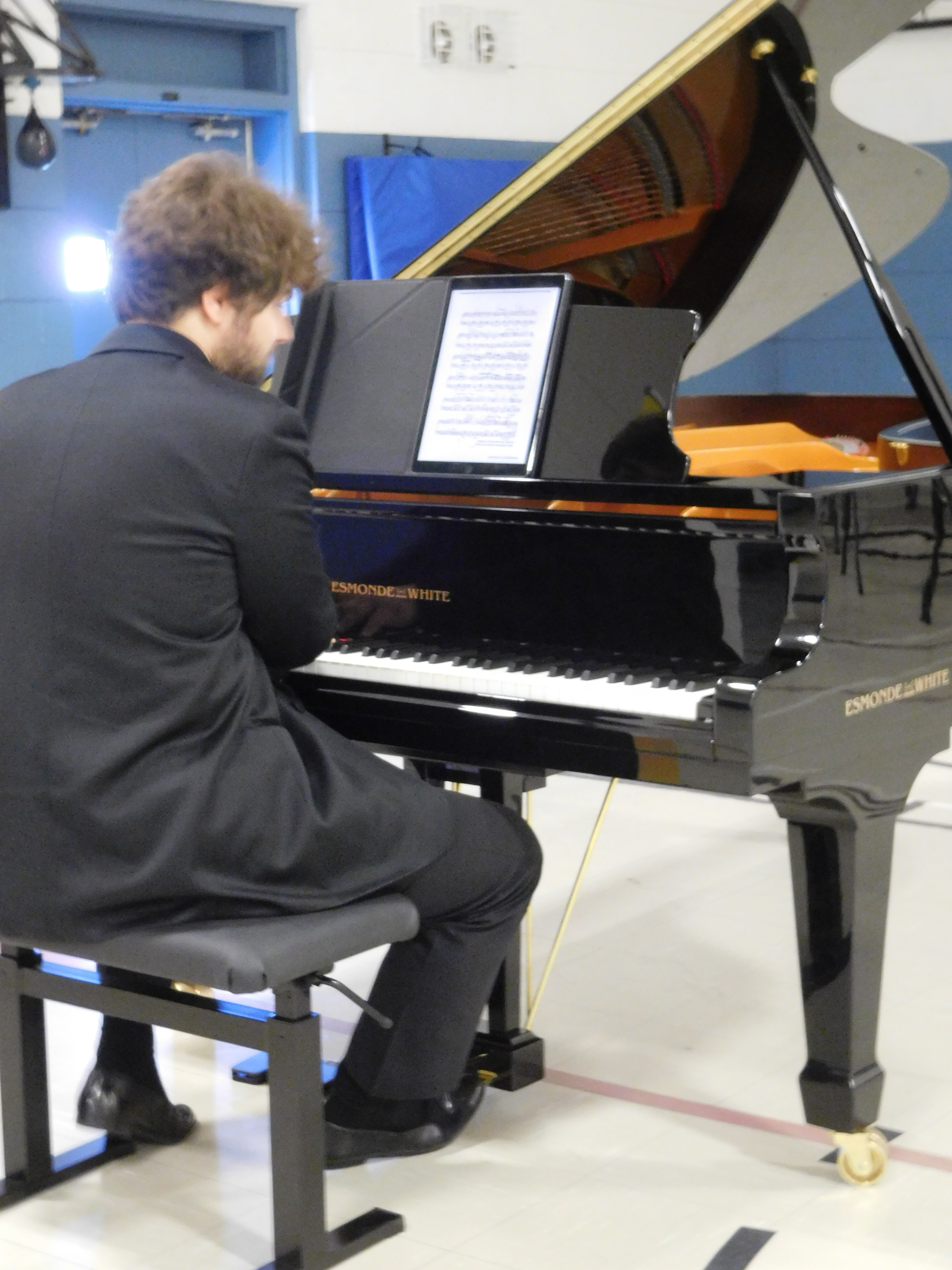 Julien, a 30-something with dark plastic glasses, a hat and a piercing on his lower lip was ahead of our concert. He could have not missed his chance to use a real grand piano (as he never even saw one until this sunny afternoon). Now Julien was busy playing Bach and Mozart compositions on it. He did not bother asking for permission. He just walked into the gym and went straight to the instrument – Esmonde-White Grand Piano. All of us, including Lukas were quite astonished. It was not about how he played, rather that he played at all and that he enjoyed it. He never took lessons or owned an instrument or read notes. He played “from his ear”. Actually, he did not give a damn about who was around him. He will be paroled in January and has promised to reach out then.