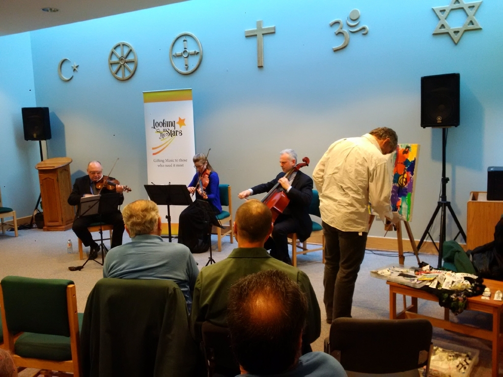In the meantime, an inspired and fully focused Stan Harwood created his No.4 painting, which will now become Looking at the Stars Bath Trademark and shared his thoughts about the process with the audience.