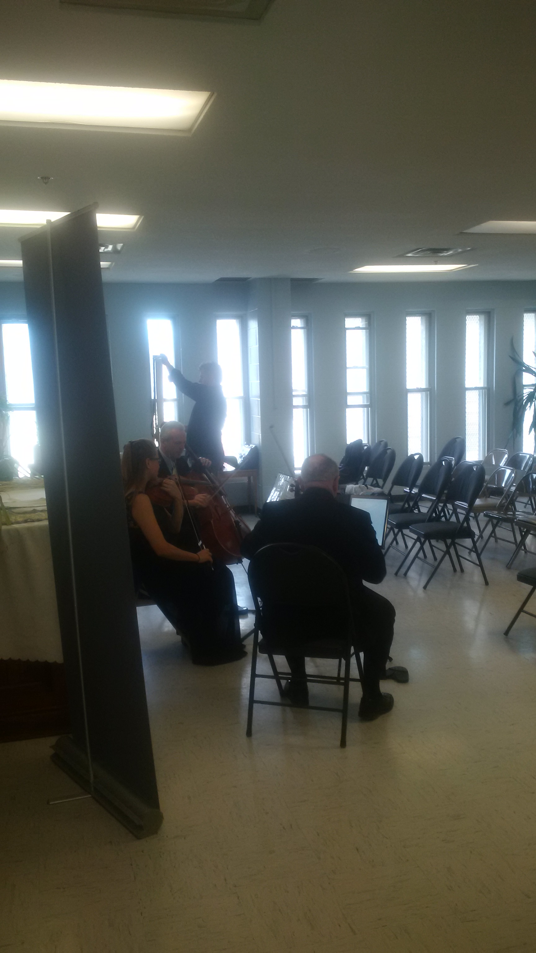 Prison staff was numerous and enthusiastic, which was unusual and gratifying to observe. The chapel was packed. Men and the rest of the audience, which also included volunteers welcomed us very warmly. Only a handful have listened or attended a classical music concert in the past, all engaged in a lively conversation with performers and yours truly throughout the afternoon. It was nice to see Crystal Thomson, Acting Warden sneaking in for about 15 minutes and blending with the crowd. Rev. Gary Reynolds and Rev. Paul Kern were joined by Neil and Gertie Minnema, chapel volunteers.