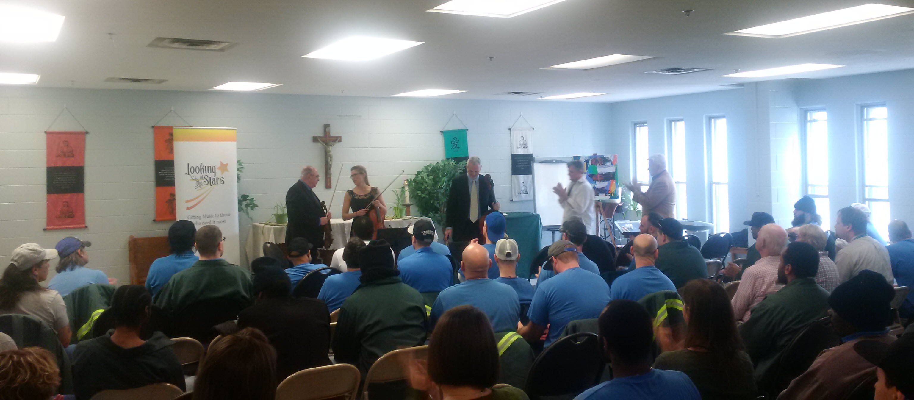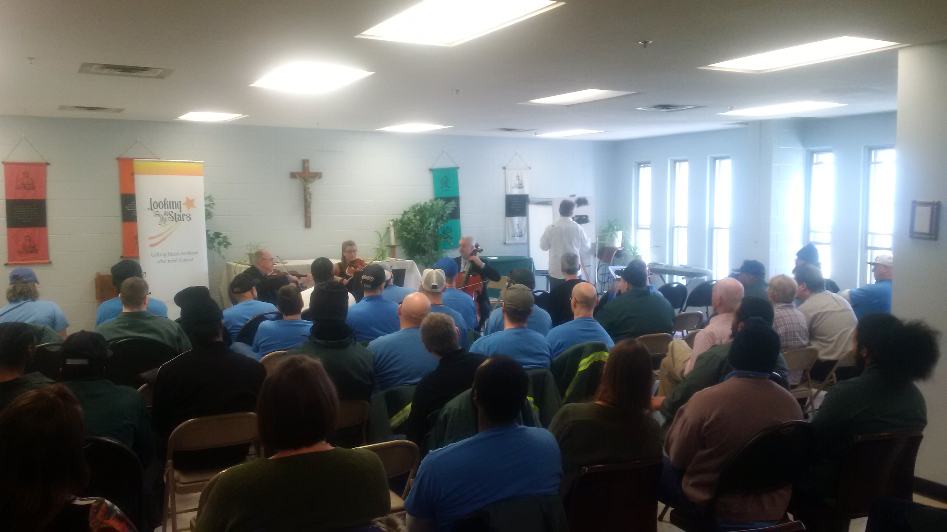 Collins Bay is one of the oldest and biggest prisons in Canada and hosts three institutions – minimum, medium and maximum. We have performed in the minimum in 2017, so were somewhat familiar with the environment. Our hosts (Nikki Smith and Janice Saunders) were extremely well prepared – the chapel was set up perfectly. We felt the excitement in the air.