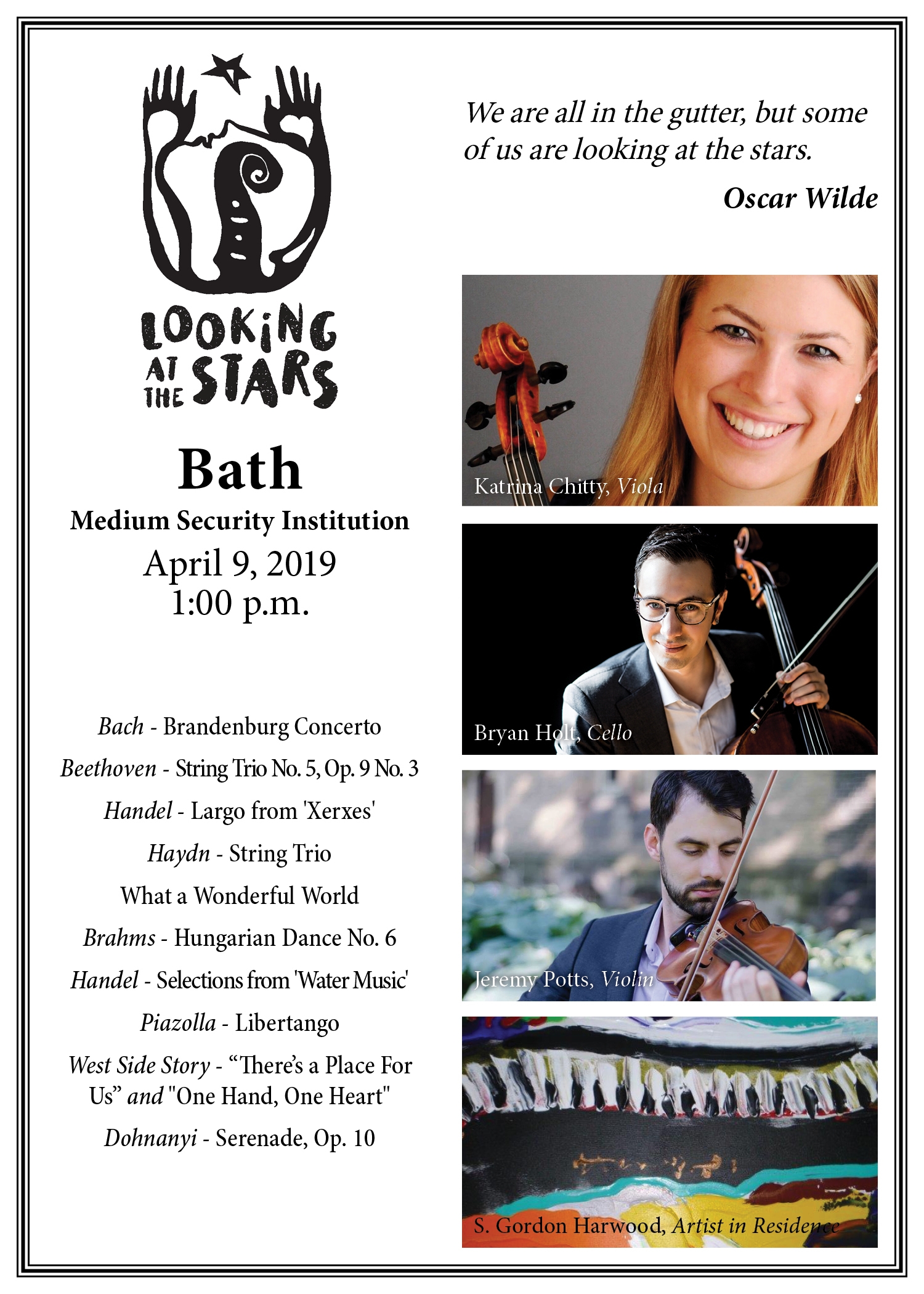 On October 11, 2019, Looking at the Stars presented a piano trio at Millhaven Maximum Security Institution. It was our third visit to Millhaven and the FIRST to be recorded by a major media outlet. CBC Radio One The Sunday Edition with Michael Enright created an extraordinary recording of the event, including interviews with Millhaven’s Warden and some insightful commentary from inmates.